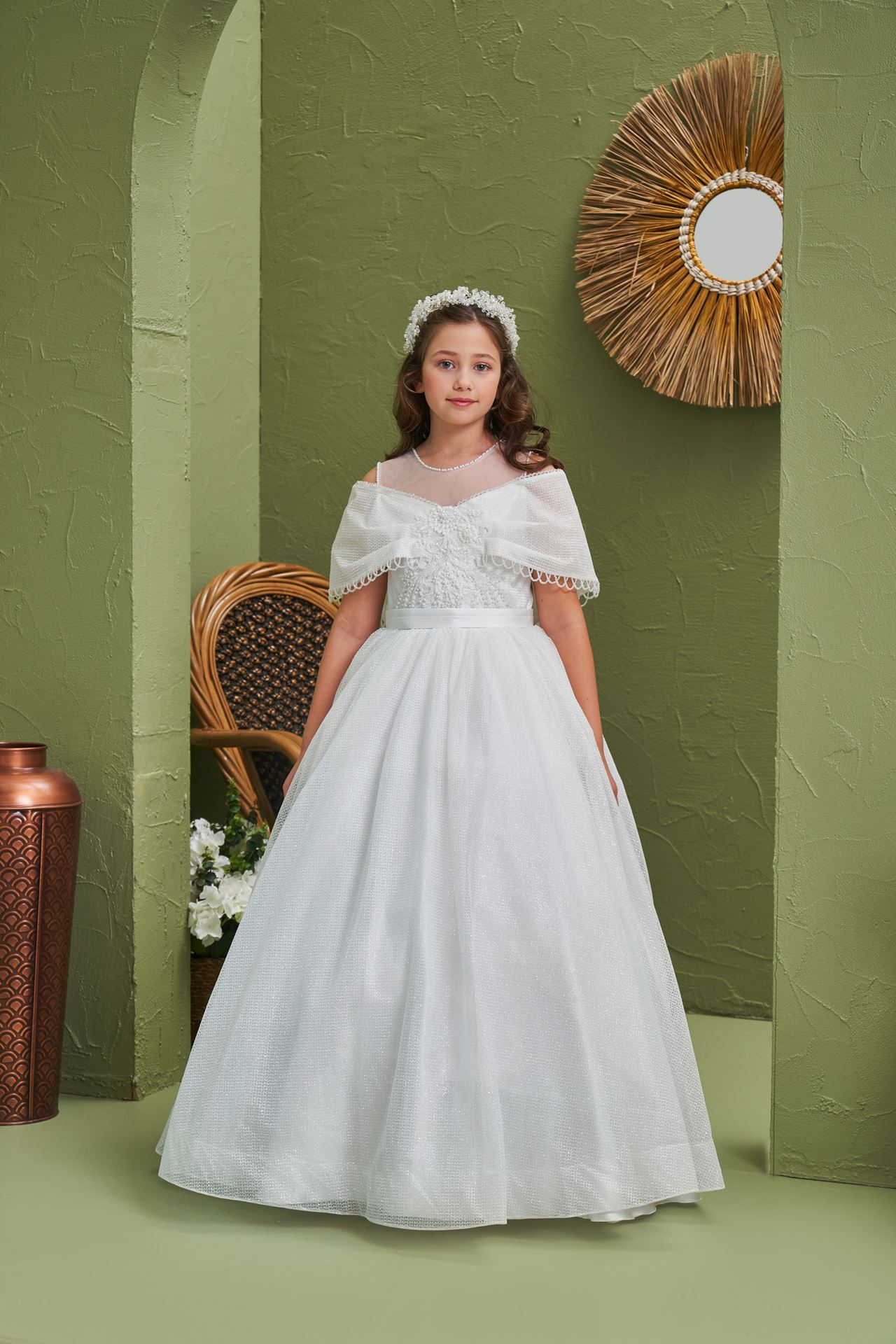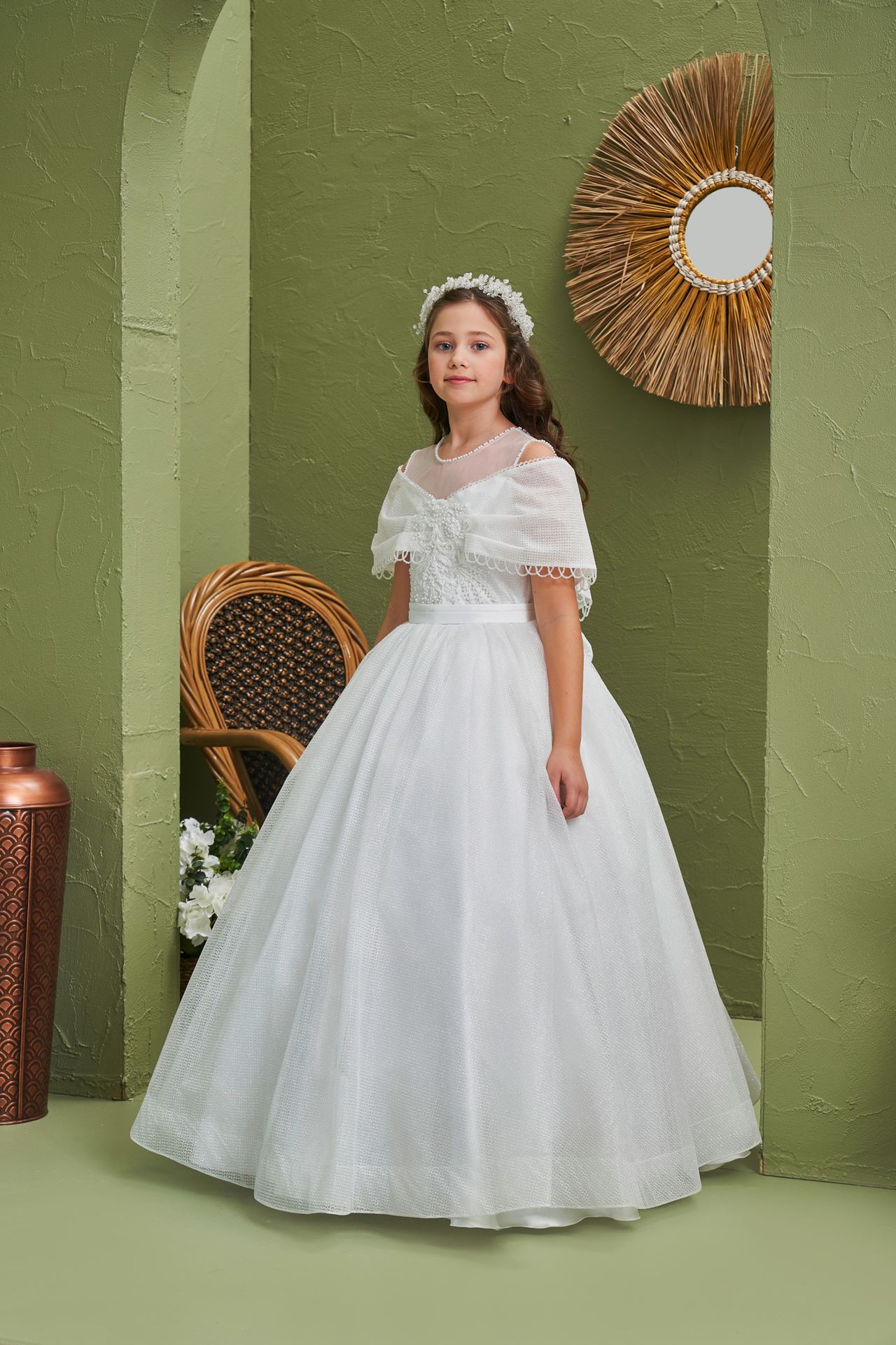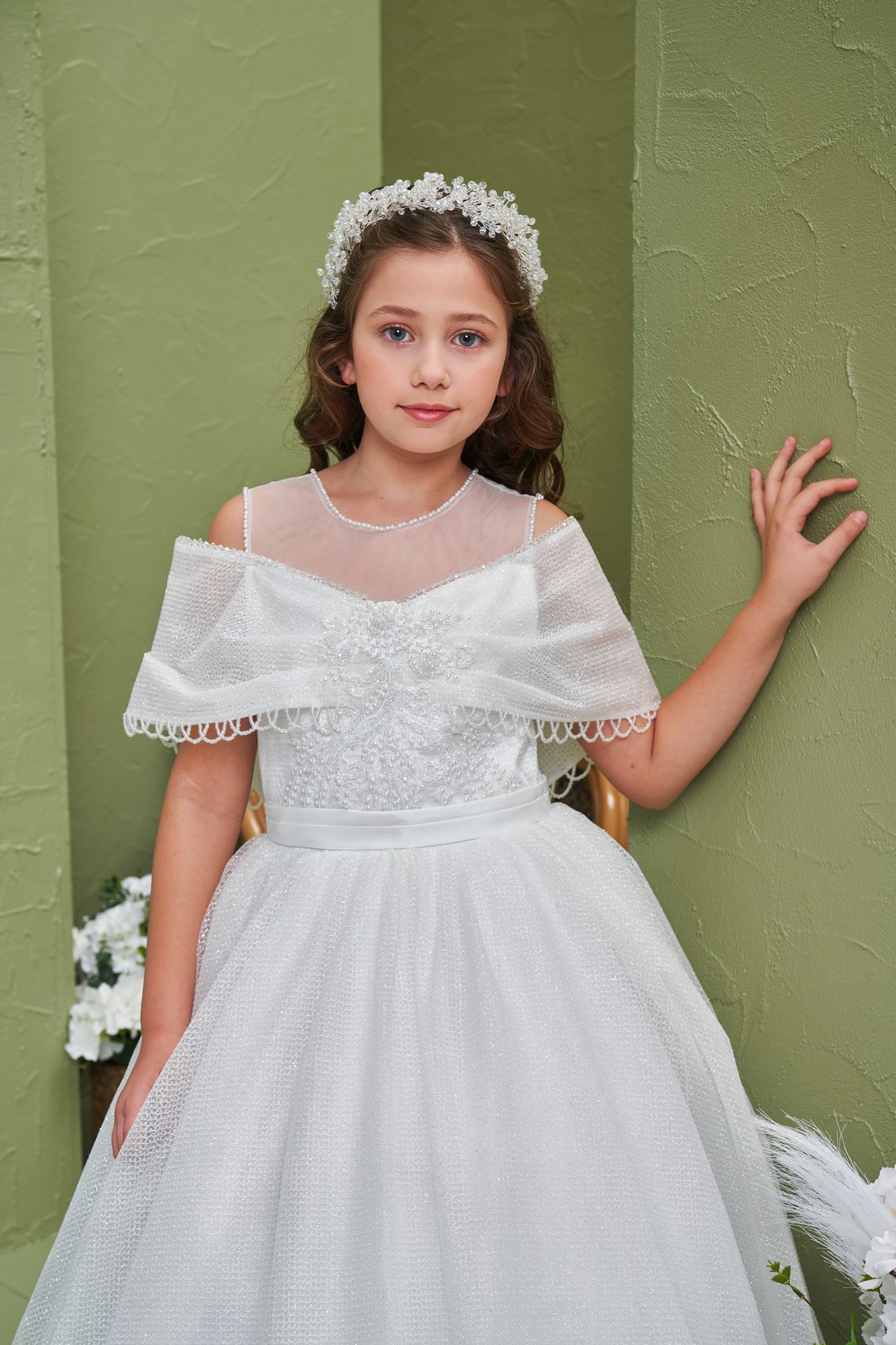 Sukienka Thetis dla dziewczynki w wieku 7–11 lat 30099 w kolorze złamanej bieli